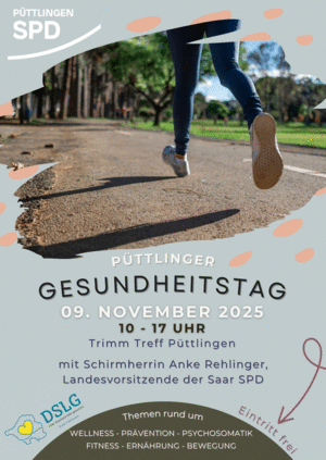 Am Sonntag, den 9. November 2025, lädt die SPD Püttlingen bereits zum neunten Mal zum Püttlinger Gesundheitstag ein. Die etablierte Veranstaltung rund um Gesundheit und Wohlbefinden findet in diesem Jahr unter der Schirmherrschaft von Ministerpräsidentin Anke Rehlinger statt.